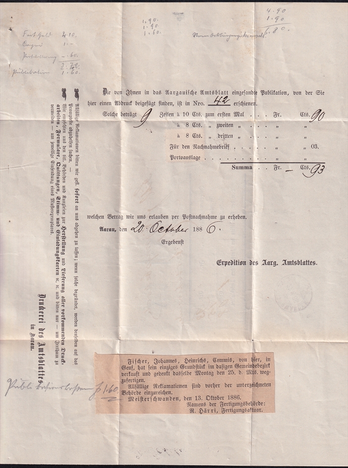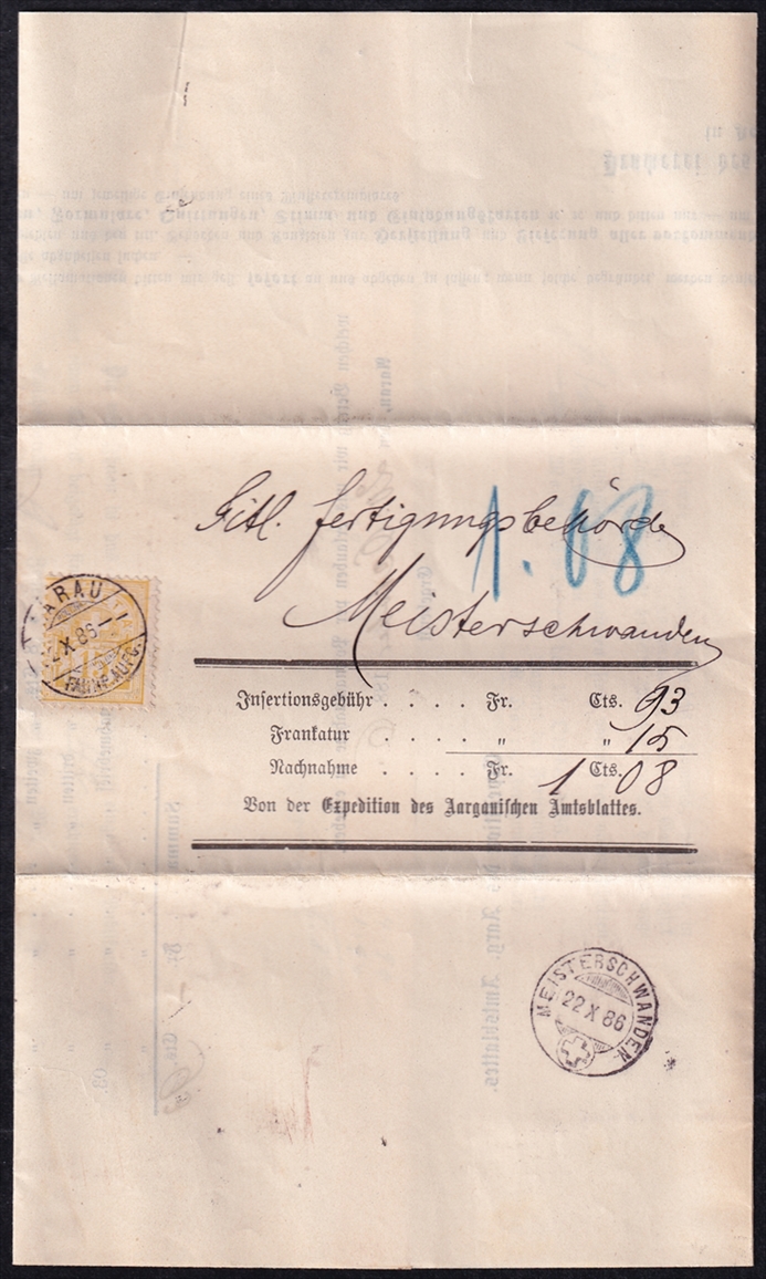 Schweiz, Ziffermuster, Nr.62A, 15Rp. gelb, sauber gestempelt BUBIKON, auf Nachnahmefaltbrief