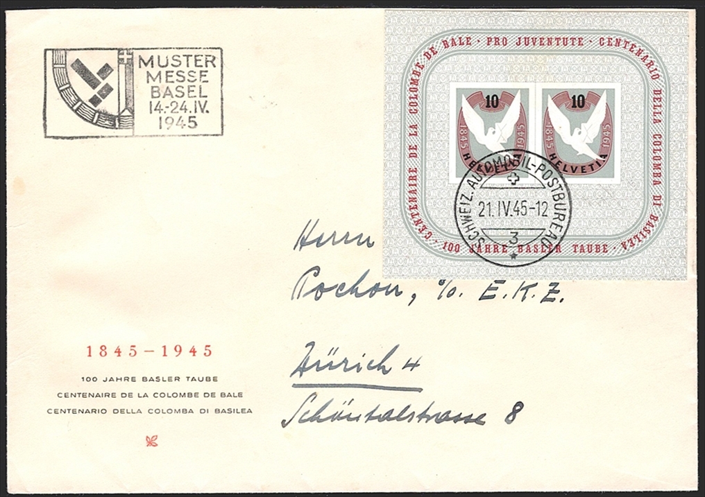 Schweiz, Zuschlagsausgaben, Blocks, Nr.23, BASLER-TAUBE-BLOCK, gestempelt SCHWEIZ.AUTOMOBILPOST-POSTBUREAU