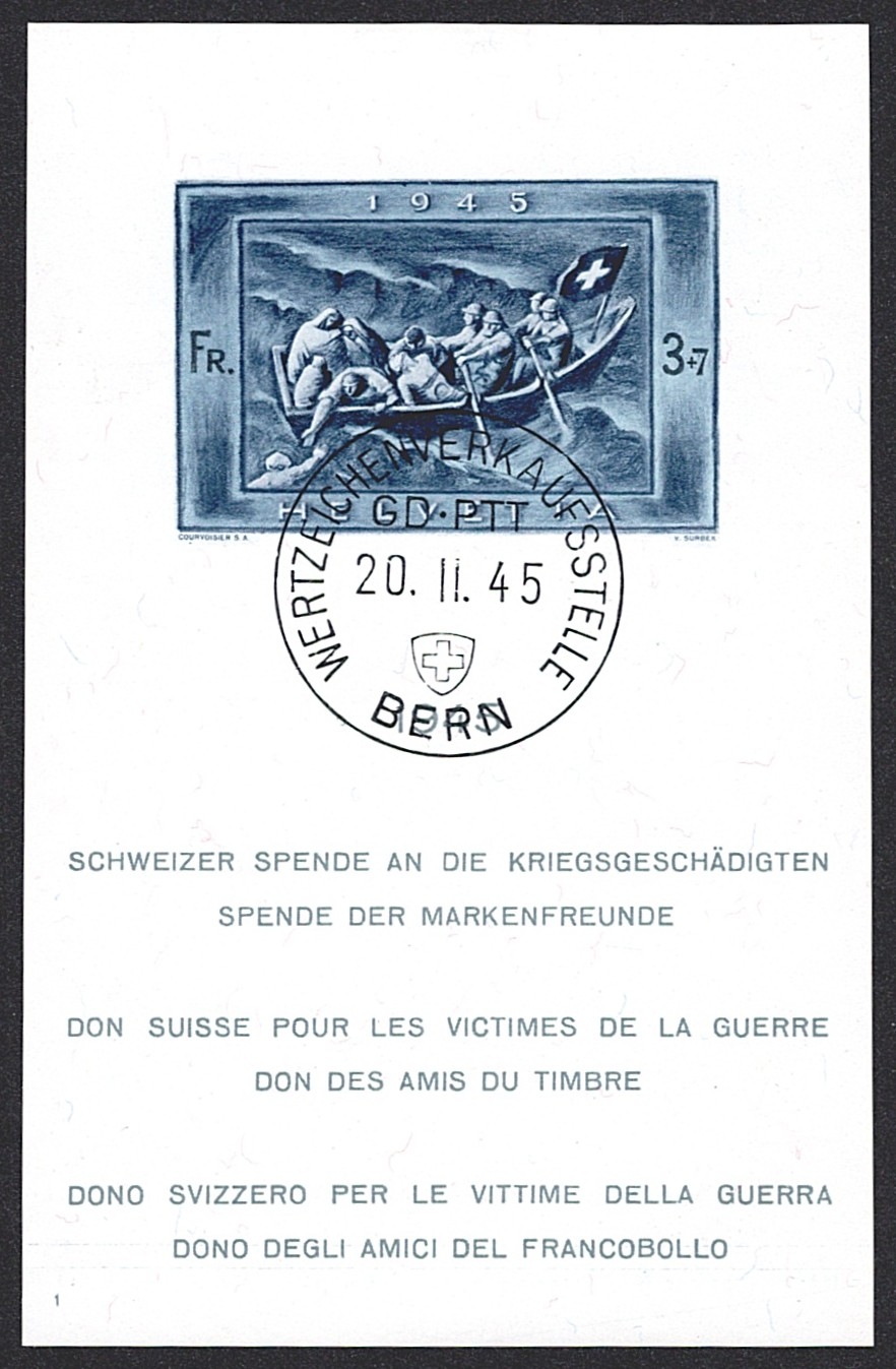 Schweiz, Zuschlagsausgaben, Nr.21, Spendeblock (Nr.1), Ersttag-Stempel WERTZEICHENVERKAUFSSTELLE BERN