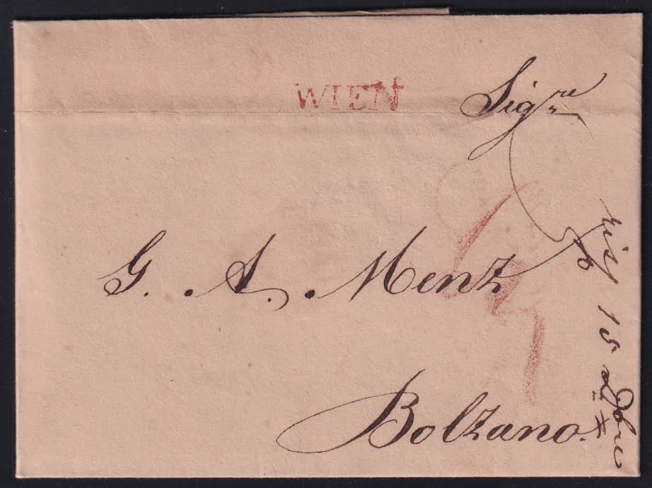 Vorphilatelie Österreich 15.11.1820 „Wien“ => „Bozen (Tirol)“