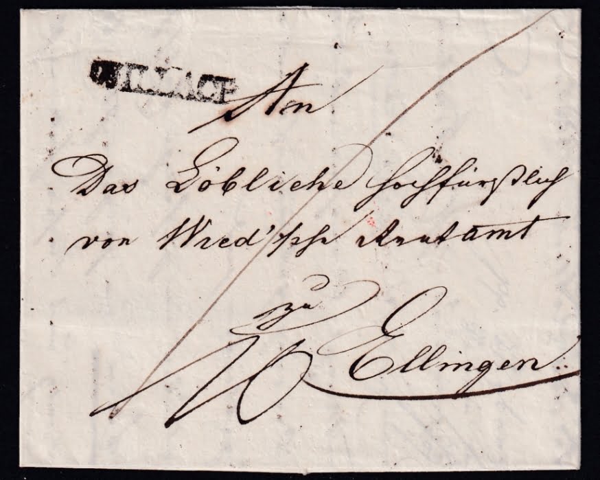 Vorphilatelie Österreich 16.3.1836 „Bleiberg“ => „Villach“ => „Ellingen“