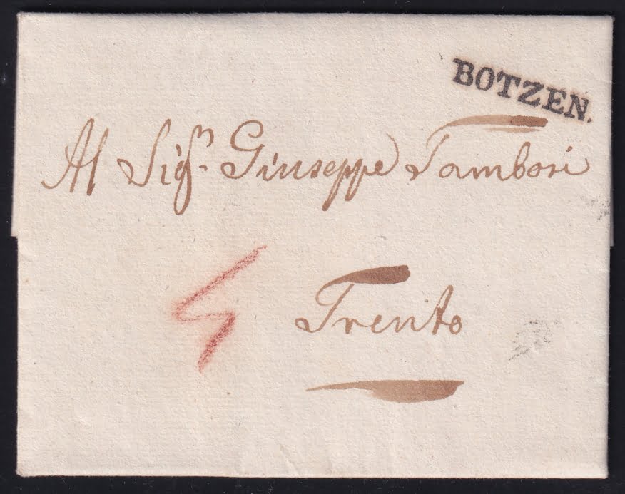 Vorphilatelie Österreich 17.09.1830 „Bozen (Tirol)“ => „Trient (Tirol)“