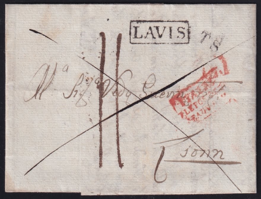 Shop » Vorphilatelie Österreich 21.4.1835 „Mezzo Lombardo (Tirol)“ => „Lavis“ => „Sardinien“ => „Lyon“
