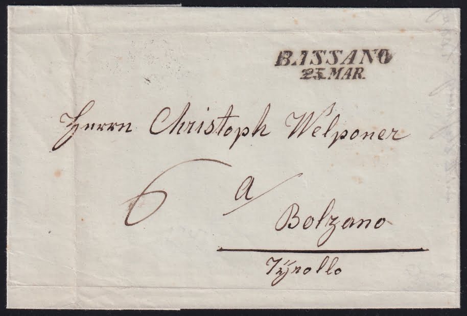 Schlagwörter: 1843, AG-E, Bassano, Bozen, Heimatsammler, Italien, Lombardei, Tirol, Vorphilatelie
